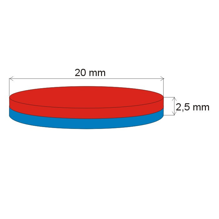 Magnet neodim cilindru cu diam.20x2,5 N 80 °C, VMM5-N38