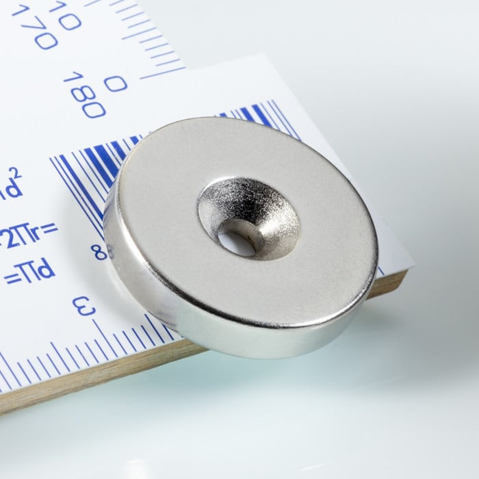 Forma magnetului: cilindru cu gaură pentru șurub - magnetizat diametral