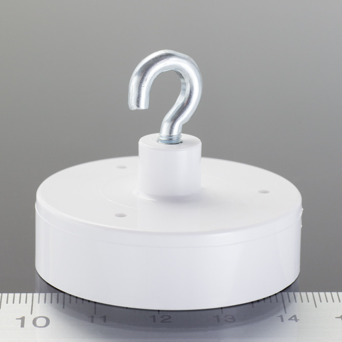 Mic, dar abil. Cârligul magnetic cu diametrul de 43 mm are forța de 12 kg, așa că susține o greutate într-adevăr mare. Se poate aplica pe frigider, tocul metalic al ușii sau plinta din bucătărie, pe raftul din atelier sau pe construcția metalică la standul de la târgul internațional. Fără lipire și găurire, suspendați tot ce vă trebuie.
