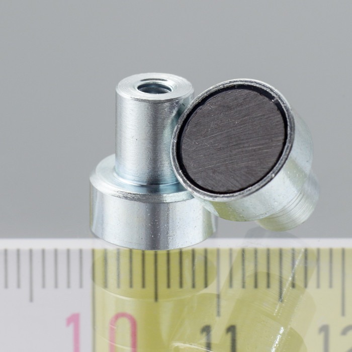 Imagnetul filetat poate fi de diferite dimensiuni și forme, cum ar fi magneții cu tijă cu filete interne.