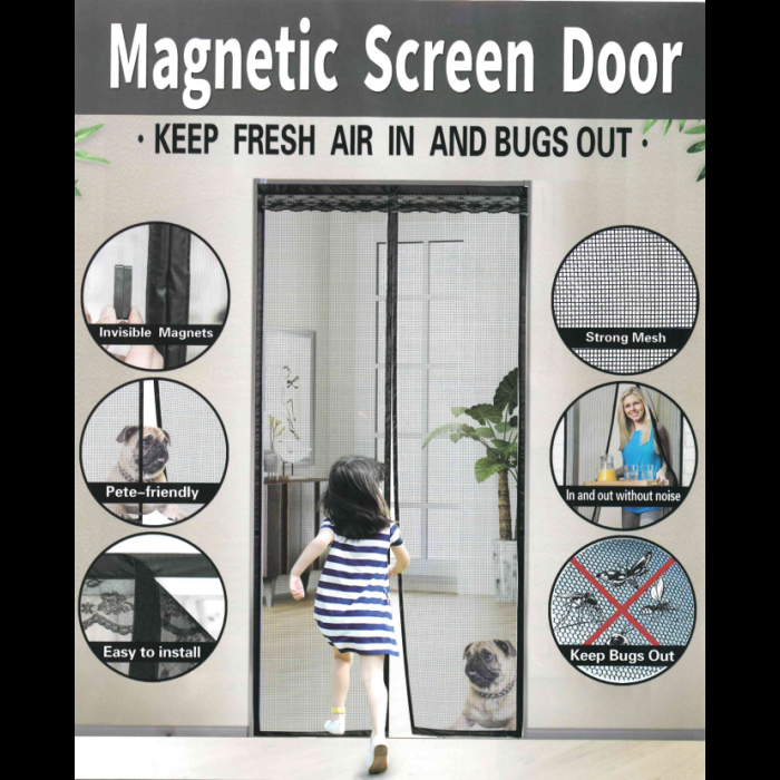 Avantajul acestei uși este faptul că se instalează foarte facil potrivit manualului de instalare. În afara sezonului, pur și simplu, o strângeți într-o rolă. Ușa cu plasă cu magneți puternici trece prin întregul centru de sus până jos.