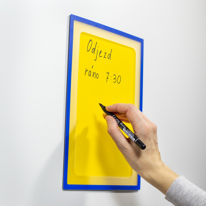 Cercetați cel mai bun loc pentru a vă face documentele vizibile? Achiziționați un buzunar magnetic cu un document A4 decupat și agățați-l ca pe un tablou. Rama magnetică este mărginită în albastru. Sub ramă se află un buzunar transparent cu o decupaj pentru a plasa cu ușurință documente de hârtie, fotografii și alte materiale.