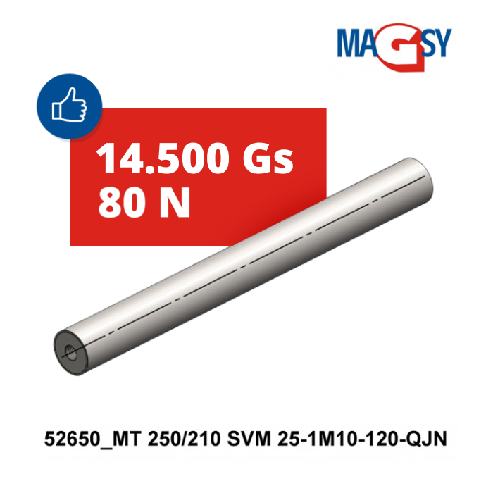 Tigla magnetică poate fi utilizată și pentru separarea magnetică din amestecuri în vrac (material uscat). Agățați-o fără să o fixați, așezați-o, așezați-o în locul pe care îl evaluați ca fiind cel mai bun pentru funcția acestei tije magnetice. De asemenea, o puteți monta oriunde cu un șurub. Șurubul nu este inclus cu tija magnetică. Nu amplasați sau agățați tija în locuri în care se află în imediata apropiere sau poate fi prezent orice material feromagnetic care ar putea face ca tija magnetică să se atașeze de acest material. Există riscul de rănire a operatorului și de funcționare defectuoasă a tijei magnetice (atunci când tija magnetică este acționată în mod continuu de metalul magnetic, puterea sa este redusă, de exemplu, dacă tija magnetică a fost instalată foarte aproape de o grindă feromagnetică sau plasată într-un jgheab de fier (magnetic)). Distanța minimă a tuturor obiectelor magnetice față de bara magnetică este de 200 mm. Dacă nu puteți să vă asigurați că tija magnetică nu este în contact cu obiecte magnetice (grinzi magnetice din fier, buncăruri, tolbe, jgheaburi, jgheaburi, diverse structuri similare) nu folosiți această tijă magnetică. Vă rugăm să contactați departamentul nostru tehnic de vânzări pentru mai multe informații, confirmarea adecvării tijei magnetice sau recomandarea unui alt produs.