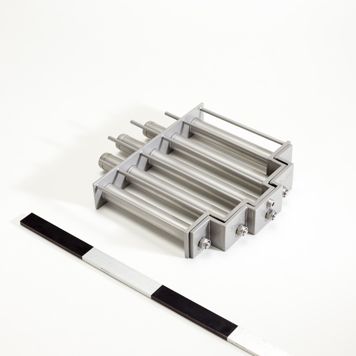 Magnetul pentru buncăr este utilizat ca o etapă preliminară pentru protecția tehnologiilor, astfel încât impuritățile metalice feromagnetice să nu ajungă în echipamente, care ar putea fi avariate, cum ar fi cuțitele morilor, concasoarelor, duzele liniilor de regranulare și granulare, duzele mașinilor de injectat, presele de extrudare, presele de compactare, echipamentele de mărunțire, sitele fine, presele de compactare ceramice, presele de sticlă etc. Peste tot unde materialul este colectat într-un buncăr înainte de tehnologie. Poate fi, de asemenea, utilizat pentru curățarea amestecului la cel mai înalt nivel de puritate, când grătarul este plasat la sfârșitul procesului de producție, chiar înainte de ambalare, expediere, pentru a evita contaminarea cu material feromagnetic în timpul altor operațiuni din fabrica de producție (de exemplu, la ambalarea manuală a produselor prin buncăre auxiliare). În acest caz, se presupune închiderea imediată a materialului curățat în ambalaje închise sau în alte recipiente închise. Datorită circuitului magnetic excelent asamblat și labirintului de cernere, creat de tuburile de oțel, se realizează o captare ridicată a impurităților feromagnetice (vă rugăm să citiți cu atenție descrierea de mai jos, ce tipuri de impurități feromagnetice metalice pot fi capturate de acest grătar magnetic).