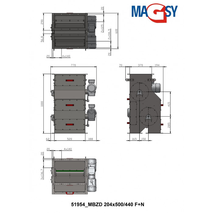 Motor: NORD - cu două viteze (0,37/0,55 kW, 17/34,5 ot./min, protecție IP 55, 230/400 V, 50 Hz)