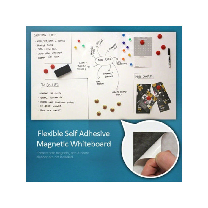 Folia acoperită autoadezivă servește ca tablă albă magnetică, tablă cu markere magnetice. Are o dimensiune de 100 × 62 cm, este potrivită pentru birou, magazin, birou și camera copiilor.